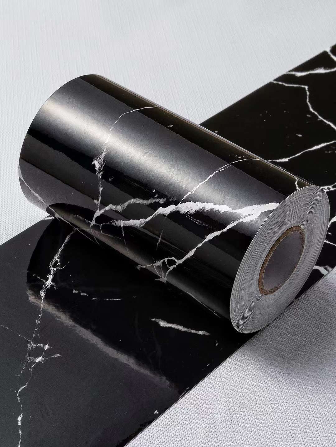Autocolant decorativ 10 cm x 500 cm - marmura neagra cu fir alb