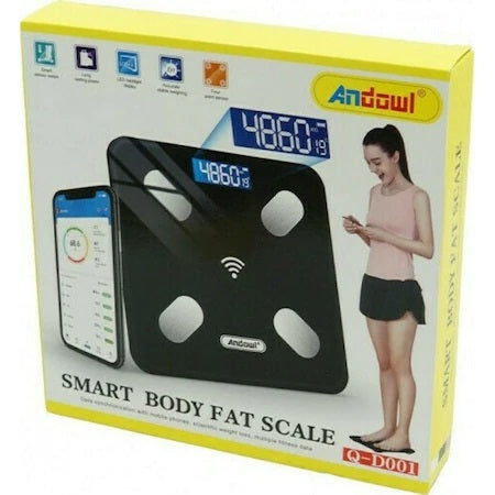 Cantar Smart Q-D001 Bluetooth, Negru, Baterii, 0.5-180 Kg