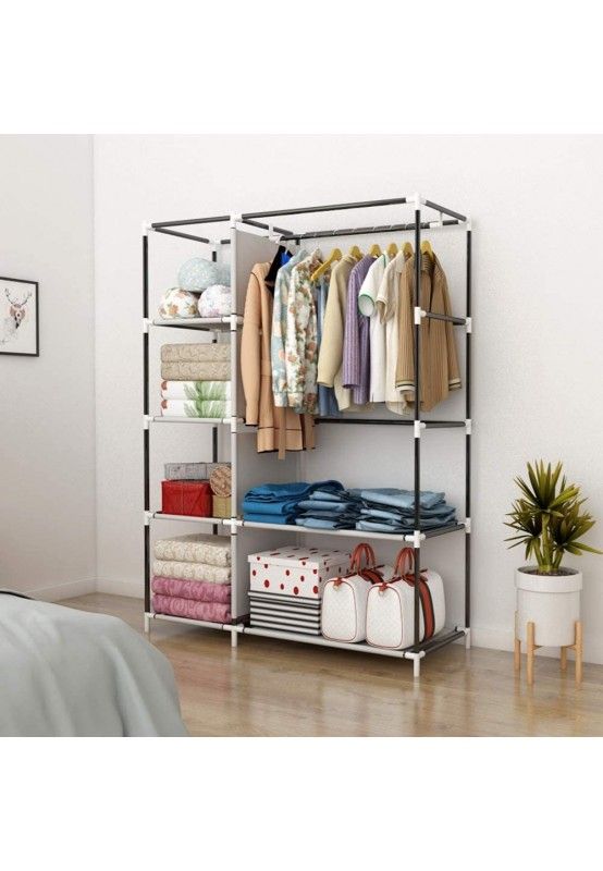 Cadrul metalic conferă stabilitate dulapului, asigurându-se că acesta poate suporta o cantitate semnificativă de haine fără a se deforma sau a se clătina.