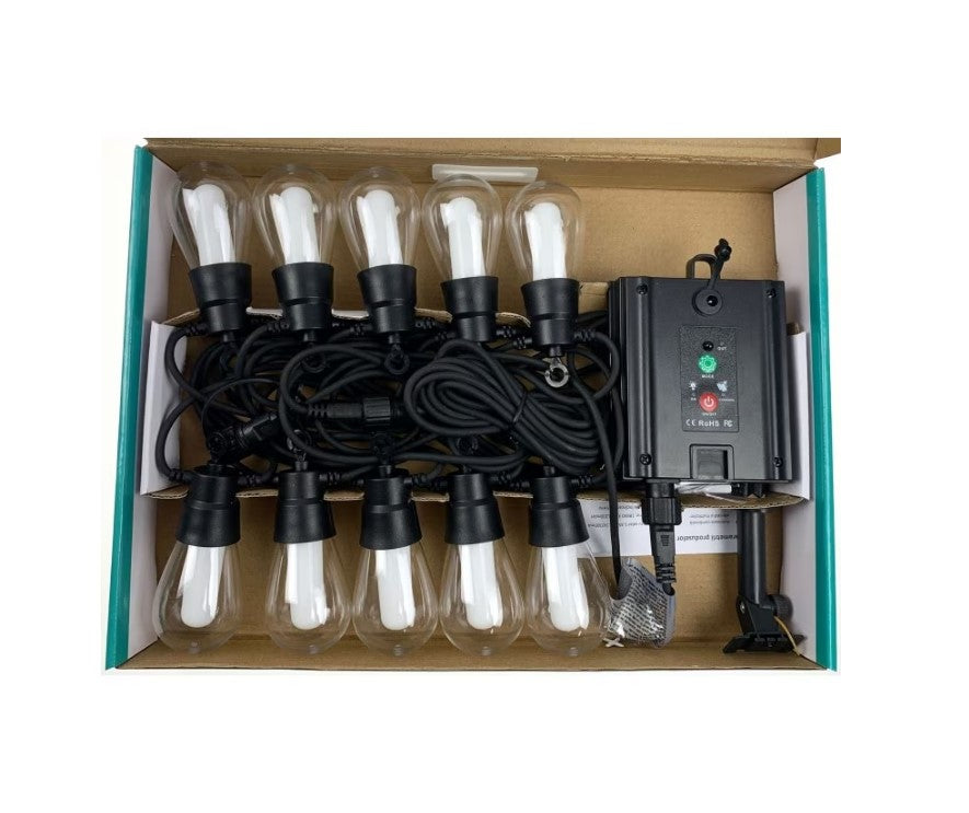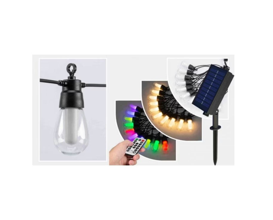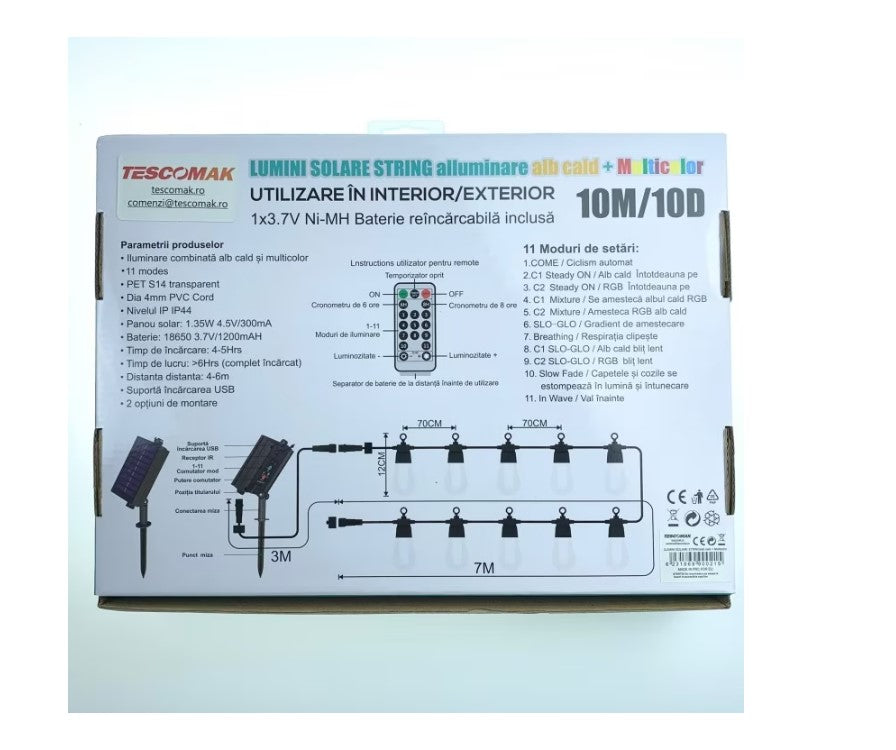 Ghirlanda Luminoasa Cu Incarcare Solara, Lumina Alb Cald Si RGB, 10 Becuri, 10 M, Telecomanda