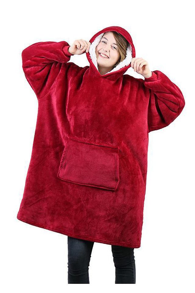 Huggle Hoodie este o patura foarte moale si calduroasa care are maneci lungi si largi, gluga si buzunar extrem de practice.