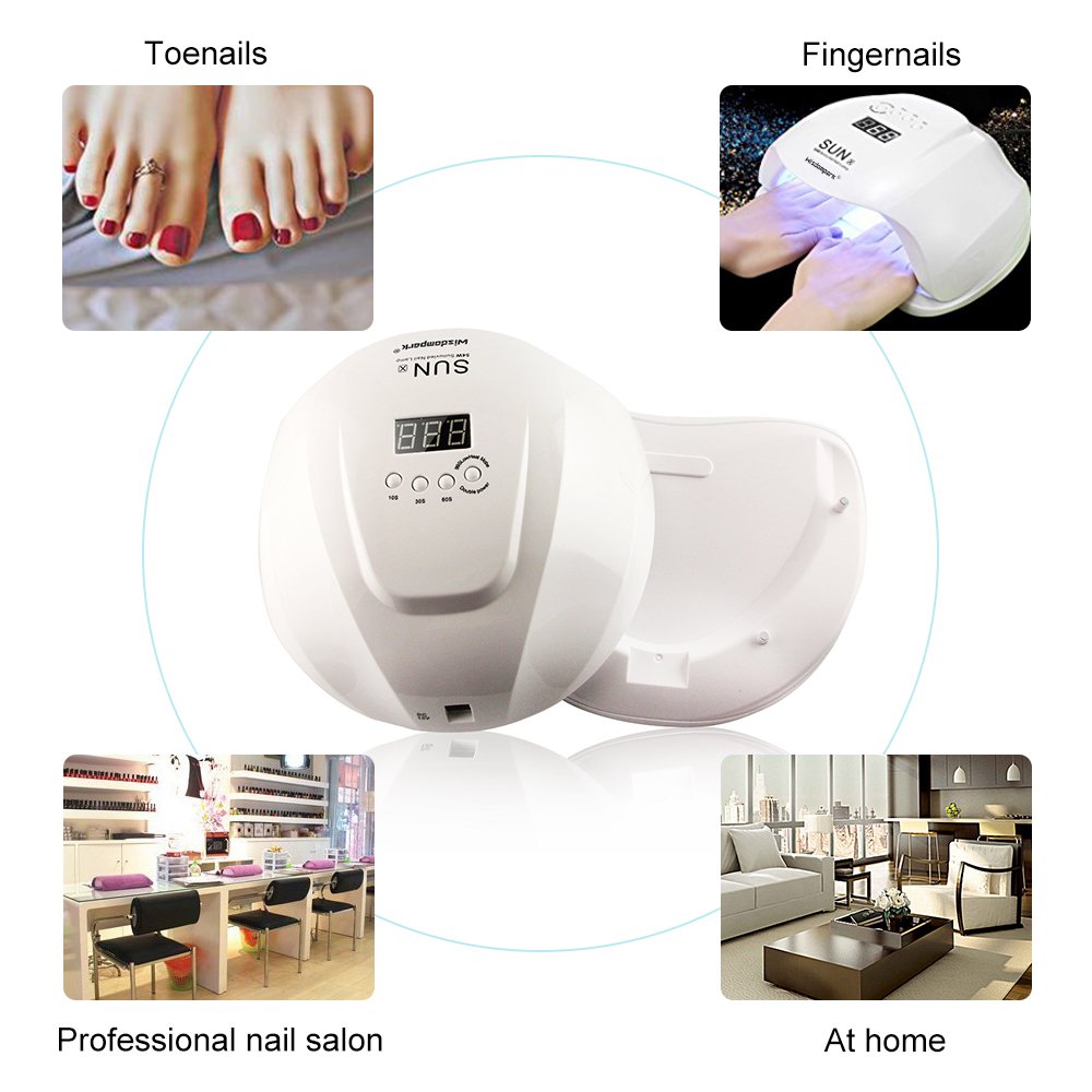 Lampa de unghii LED cu 4 butoane de reglare a timerului (10s 30s 60s 99s) si 2 butoane in 1 (99s lowheat / double power) puteti comuta 54w / 48w putere cu dubla putere.