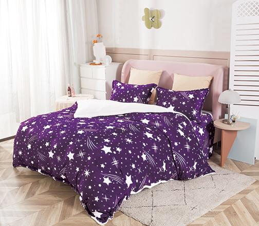 Lenjerie pat cocolino 2 persoane, 4 piese - stele mov