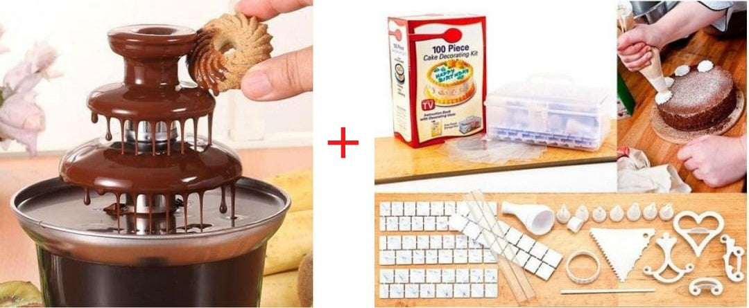 Mini fantana de ciocolata + Set decorat torturi 100 piese
