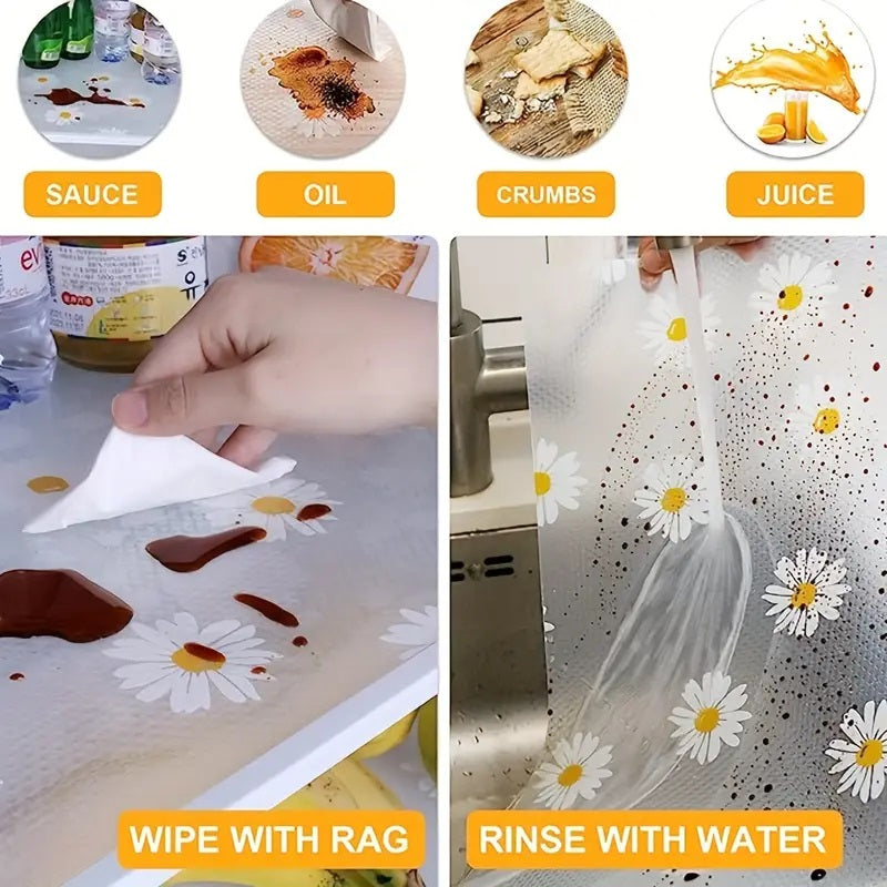 Oferta 1+1 Folie din silicon pentru sertare, model margarete, 45 x 300 cm