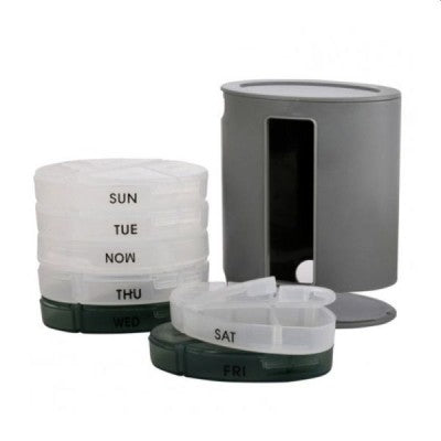 Sistemul perfect de depozitare si dozare a medicamentelor. Ajuta la organizarea si dozarea medicatiei zilnice si saptamanale, atat in tratamentele de scurta durata, cat si in cele de lunga durata. Datorita faptului ca este din plastic translucid, puteti vedea daca ati luat medicatia fara a deschide compartimentul. A nu se lasa la indemana copiilor.