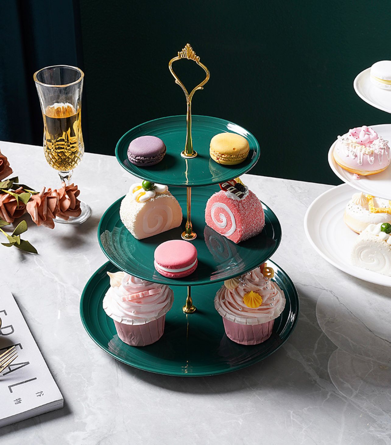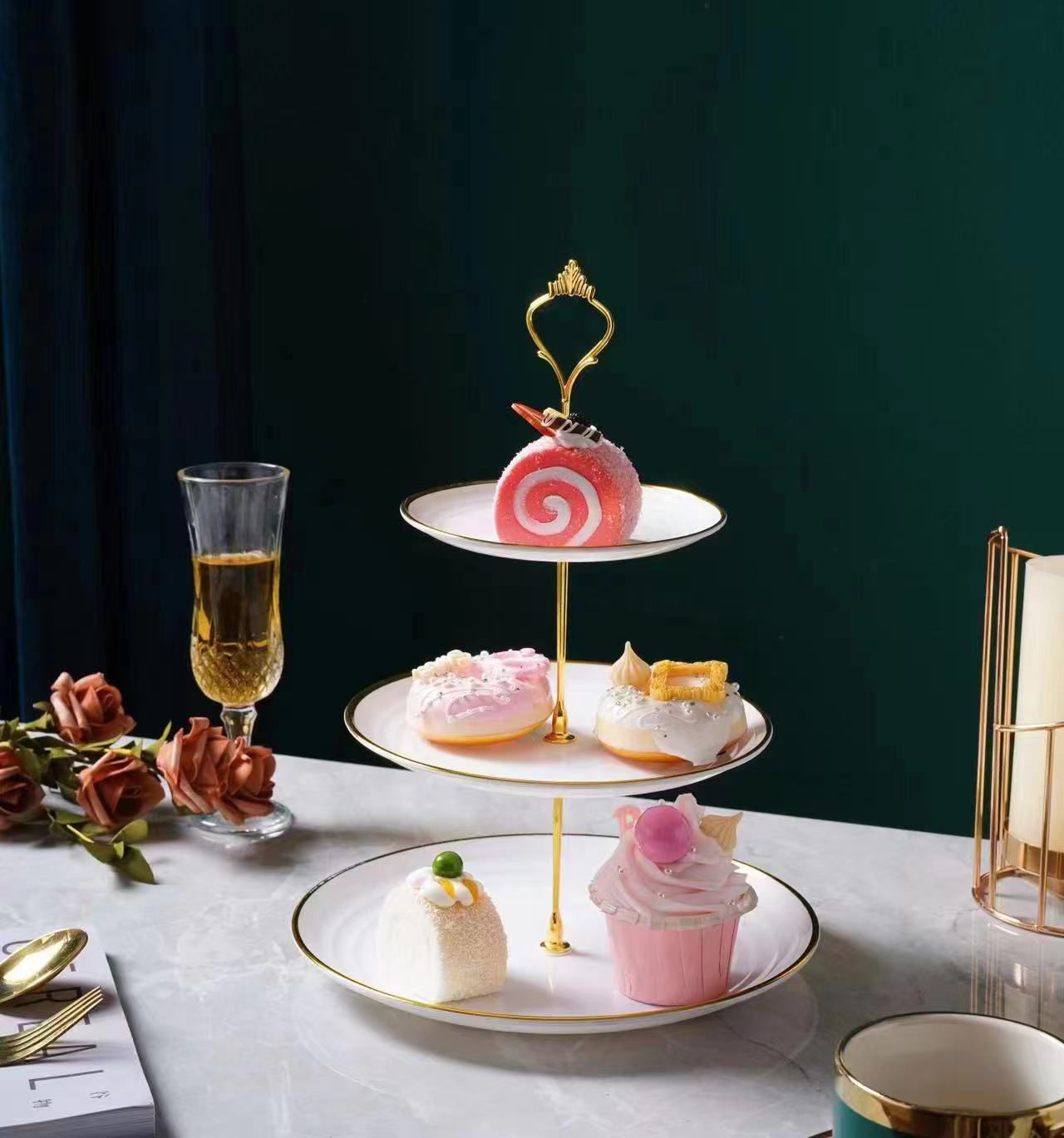 Platou pentru prajituri etajat pe 3 nivele