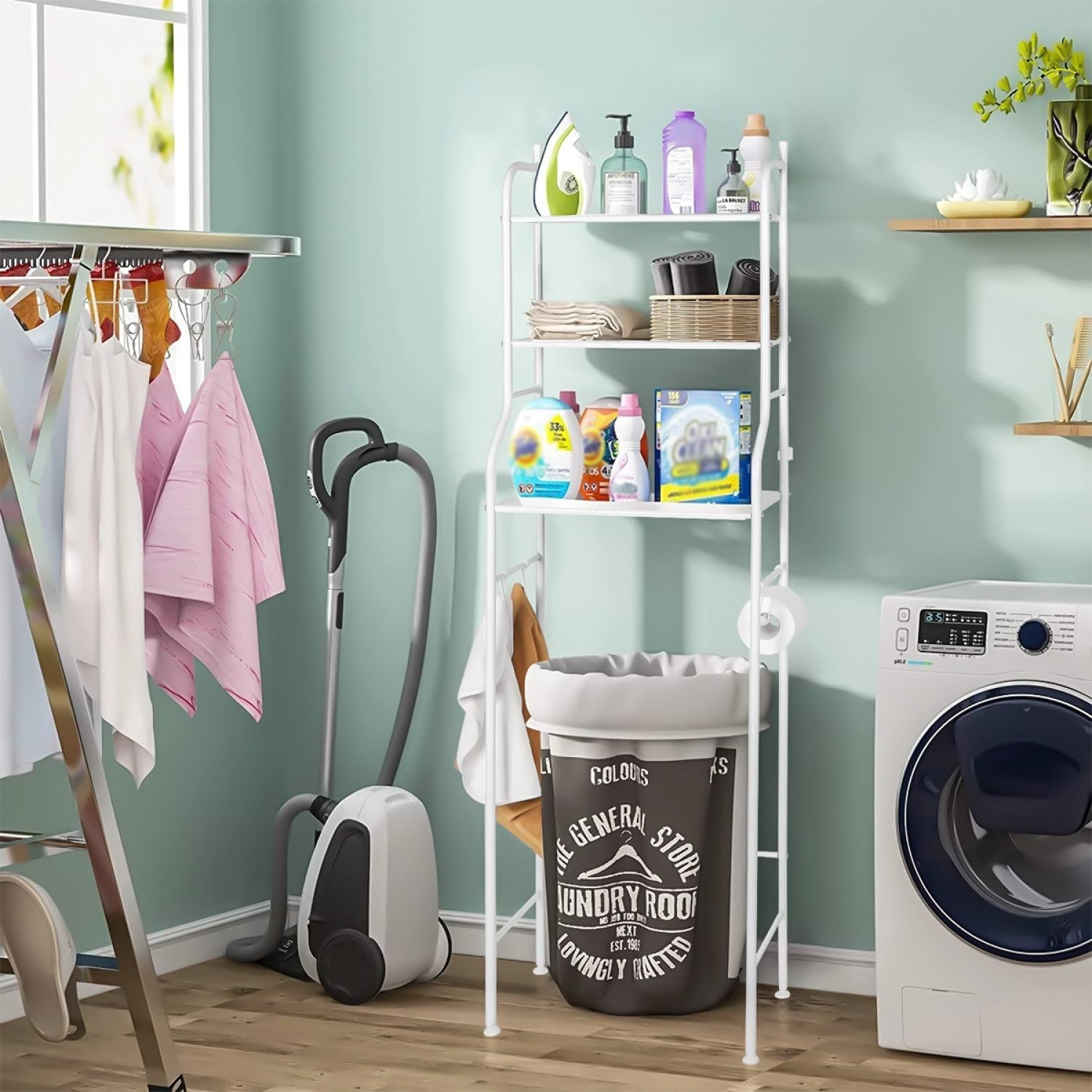 Raftul de depozitare cu 3 polite, de amplasat deasupra toaletei, va fi cu siguranta solutia perfecta pentru a crea mai multe spatii suplimentare de depozitare intr-o baie supraaglomerata sau in spalatorie.