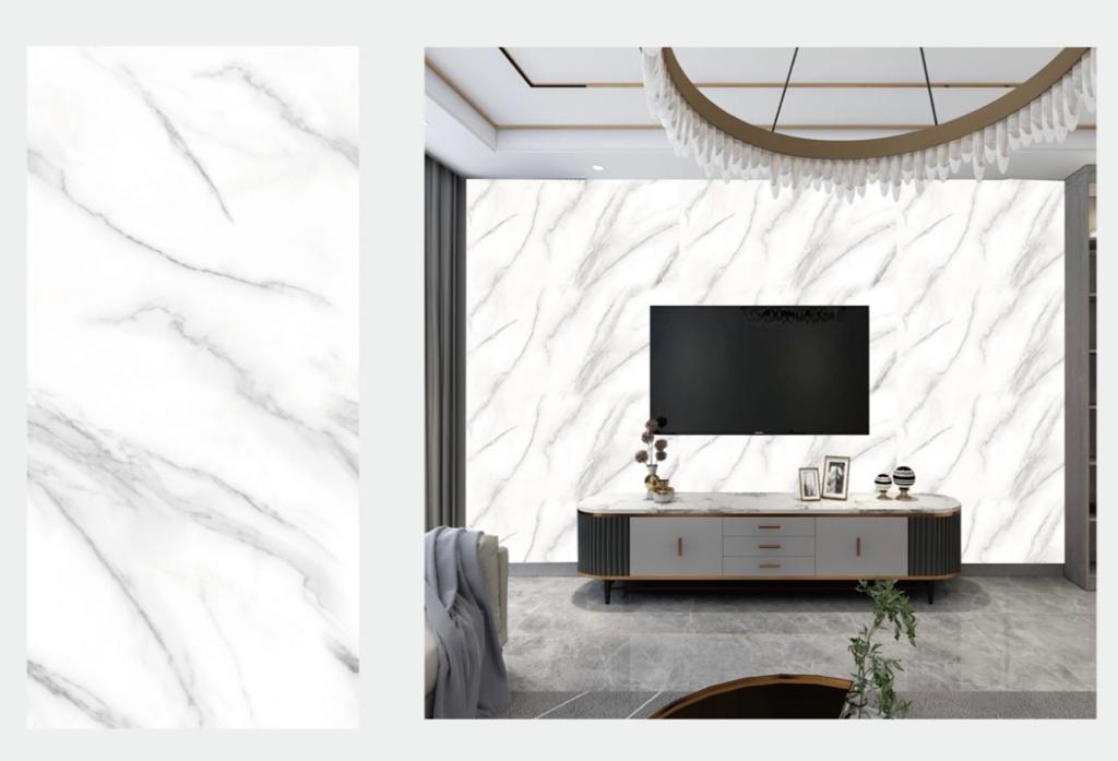 Set 10 x Tapet 3D Autoadeziv cu model marmura alb cu fir gri, 30 cm x 60 cm x 6mm