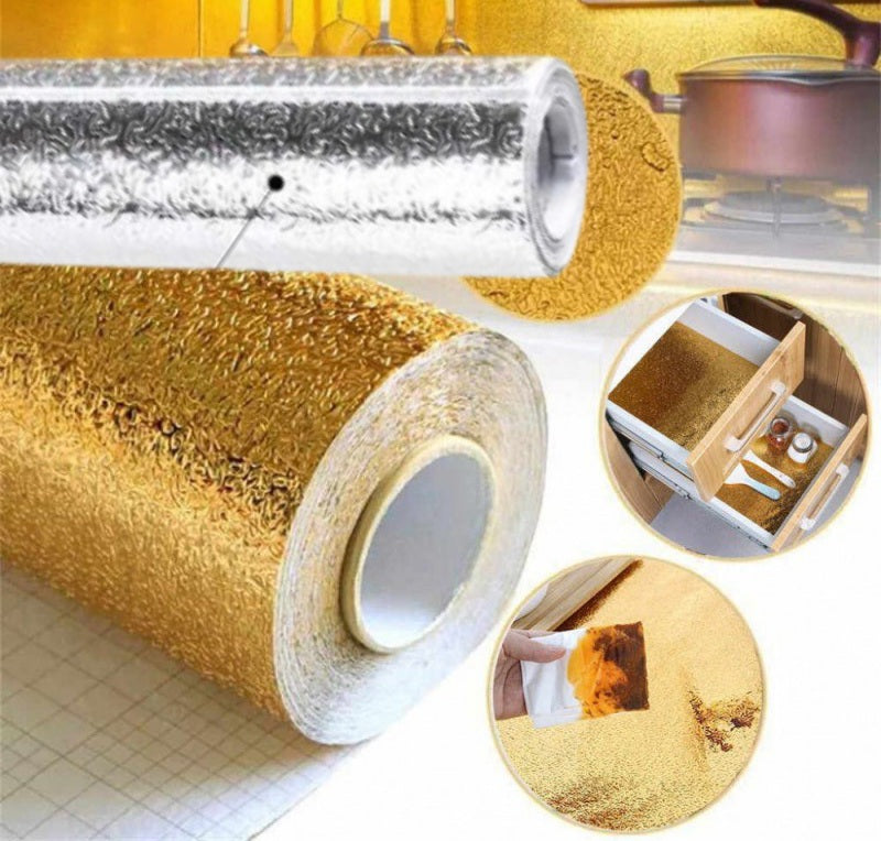 Continut pachet: 2 x Folie aluminiu autocolanta bucatarie argintie si aurie