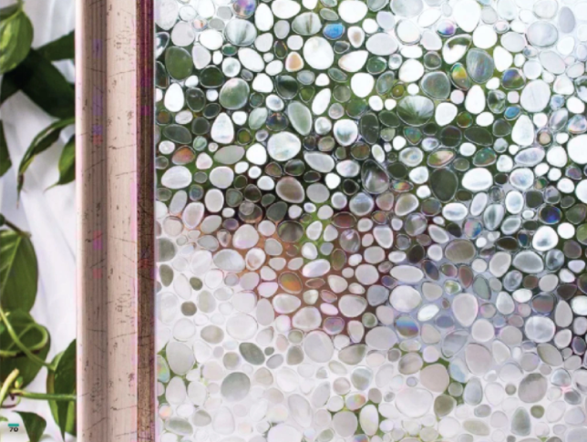 Prin efectul 3D se asigura un mediu vitrat sablat, iar modelul rosete aduce o lumina placuta subtila cu irizatii interesante si intimitate in spatiul caminului ferit de indiscretii si de radiatia UV nociva.