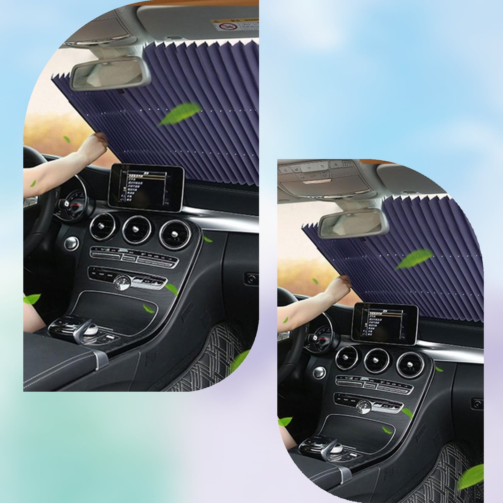O poți plia și înfășura pentru a o lua cu tine în mașină oriunde mergi, astfel încât să ai întotdeauna la îndemână protecția împotriva razelor UV și a căldurii excesive.