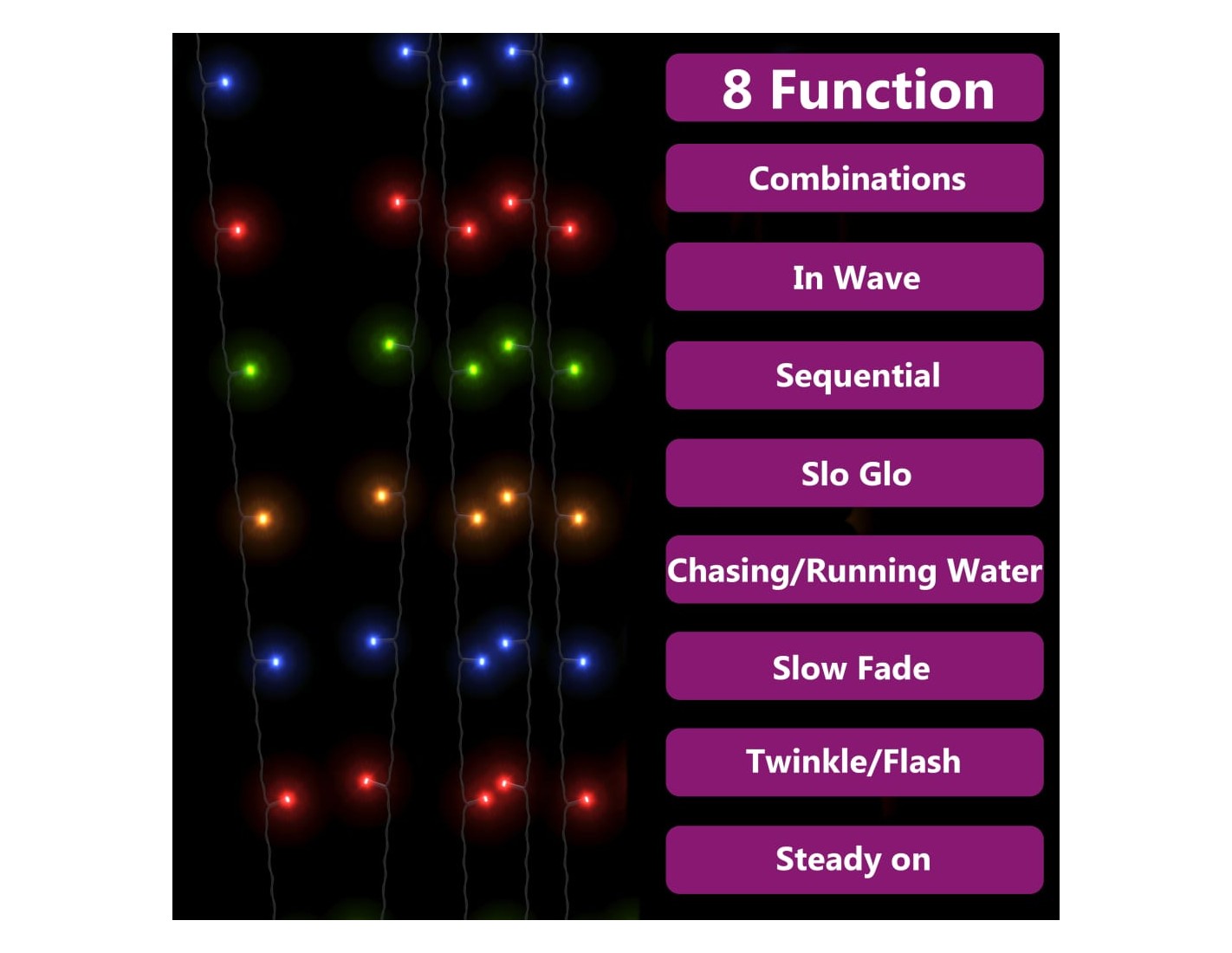 Aceasta instalatie solara dispune de 100 de LED-uri multicolore care emit lumina stralucitoare si vibranta. Aceasta poate adauga un efect de iluminat festiv si vesel in spatiul exterior.
